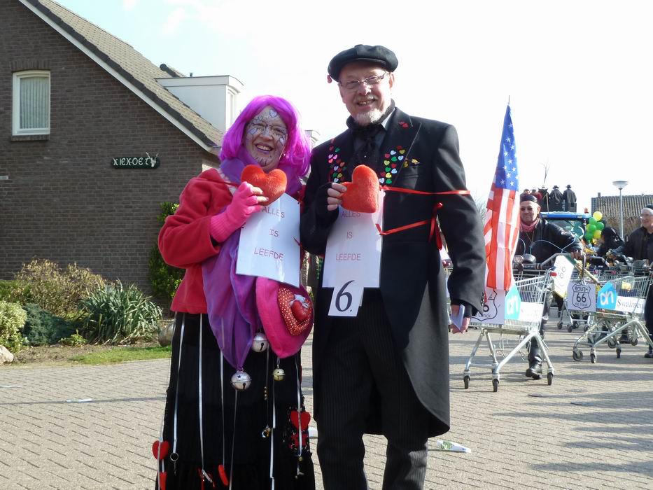 Dit jaar in maar liefst drie optochten meegelopen. In Boukoul en Swalmen liepen we als stel, onder het motto “Leefs oet Boekoel” en deelden we een gedichtje over de liefde uit. Dit naar aanleiding van het motto van de optocht in Swalmen, “Leefs oet Zjwame”. De reacties varieerden van verrast, enthousiast tot blije herkenning nu men eindelijk zag wie Lisa Naus in het echt was. De zesde prijs in Boukoul was mooi meegenomen; wij hebben toch al de hoofdprijs!